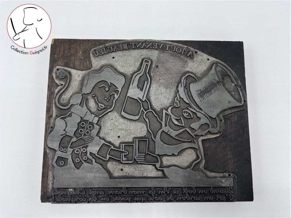 Le numéro de téléphone à 8 chiffres présent sur la carte de voeux (photo n°4) nous indique que ce document fut imprimer à partir de 1985. Cette carte est signée Jean Zillioux qui a dirigé le GUIGNOL DE FRANCE jusqu’en 1994. La matrice fut donc gravée entre 1985 et 1994. Elémentaire mon cher Guignol!